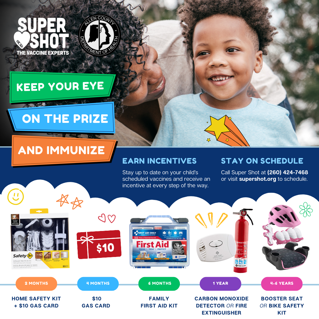 For those choosing to vaccinate through Allen County Department of Health or Super Shot Inc, we want to thank you for taking the time to protect your child and have developed a rewards program to keep you on track.